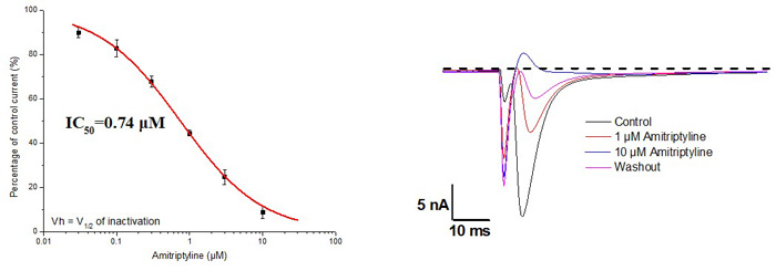 注:1)阳性对照10 μM Amitriptyline将作用于所测试的细胞以保证细胞钠通道的反应正常。